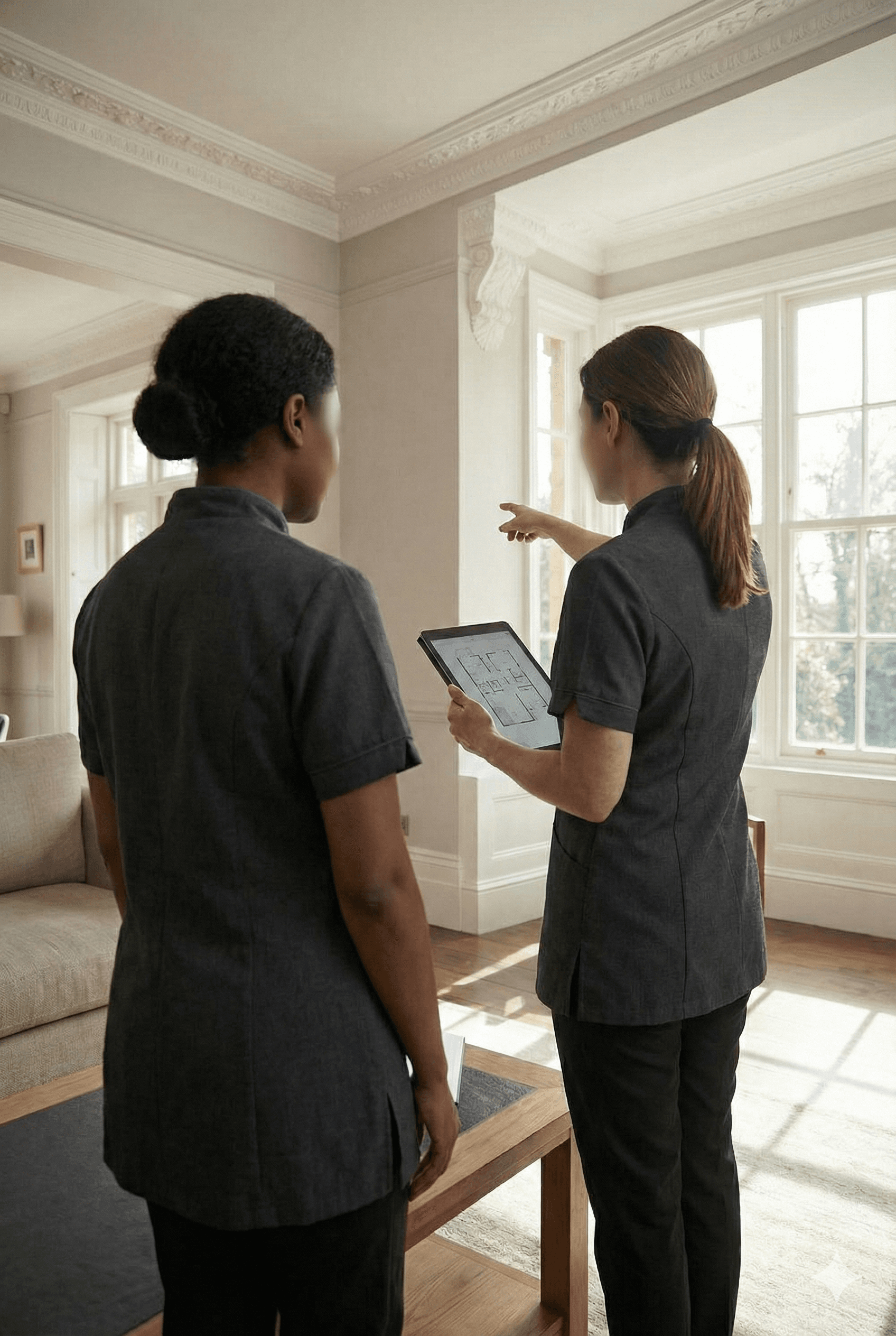 We walk every room before we begin. Every surface, corner, and priority area is noted so the team arrives prepared and nothing is missed.